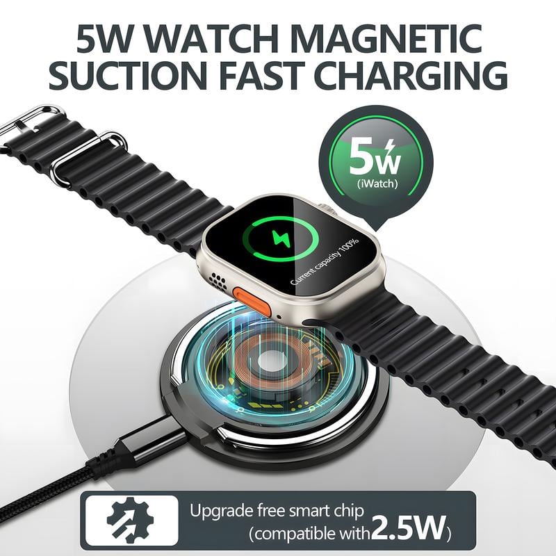 Compact and portable, it can charge your iPhone, Apple Watch, and AirPods simultaneously, perfect for home, office, or travel.