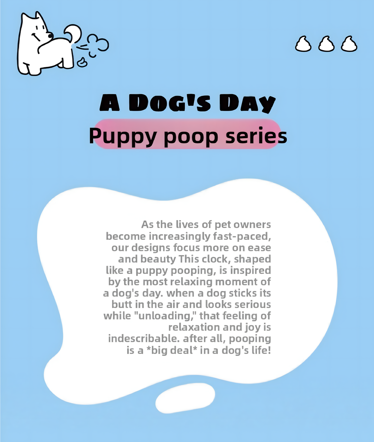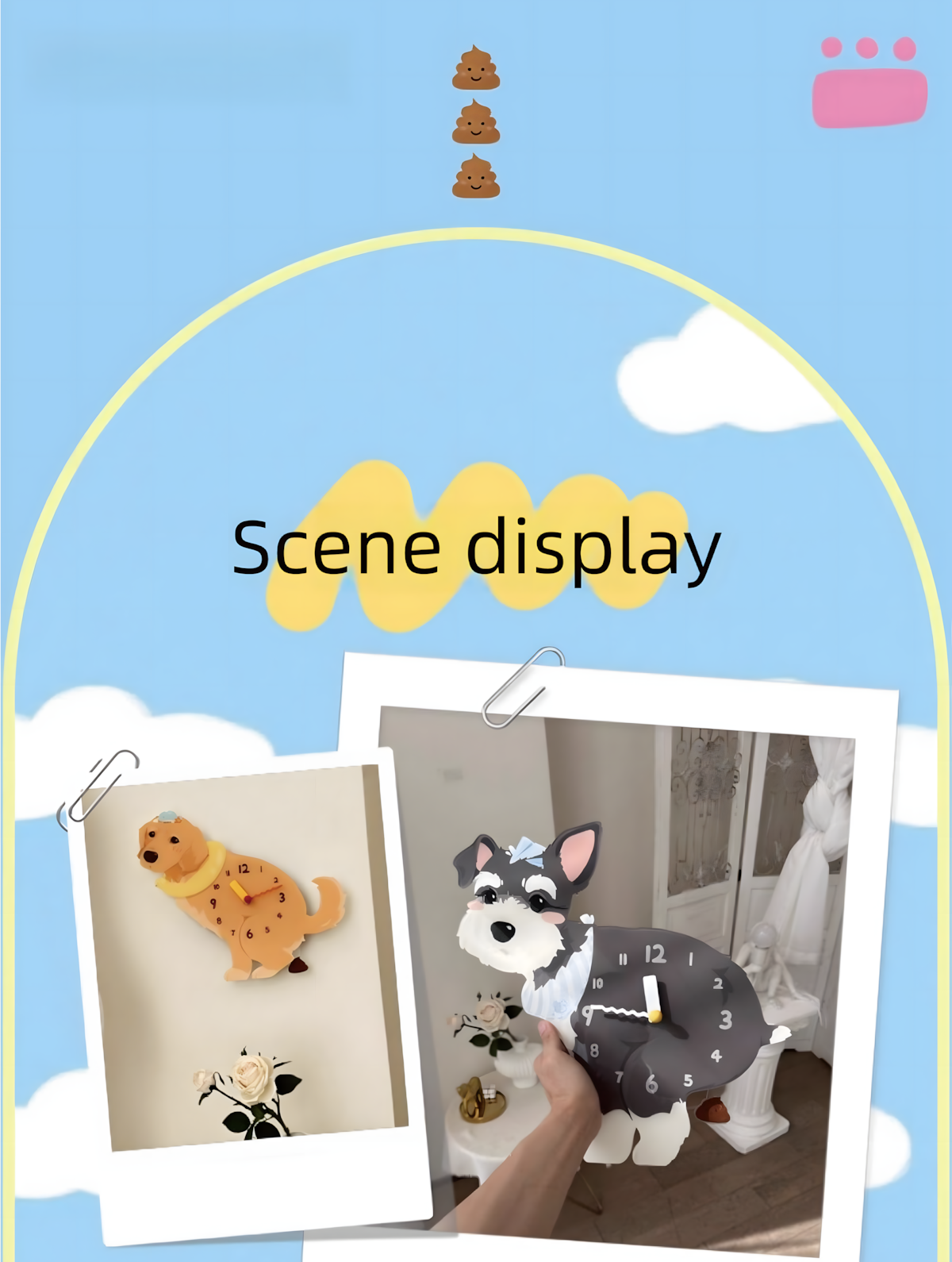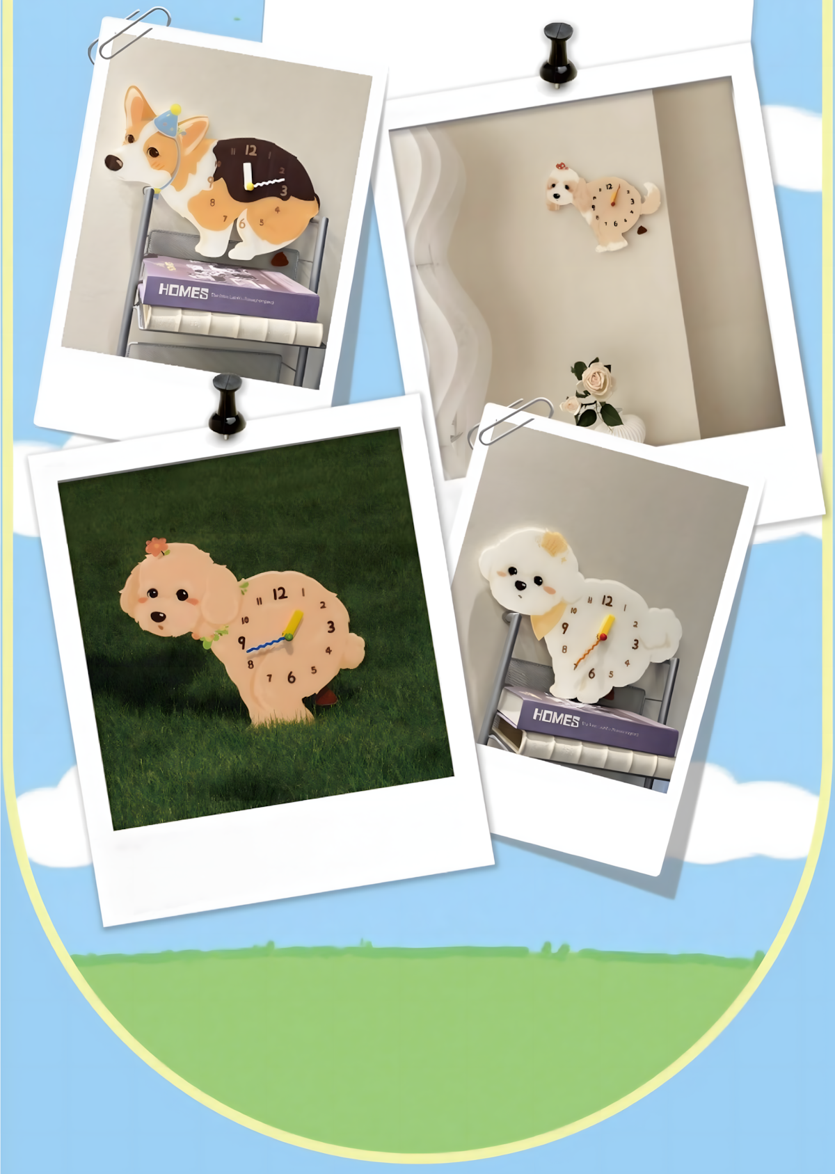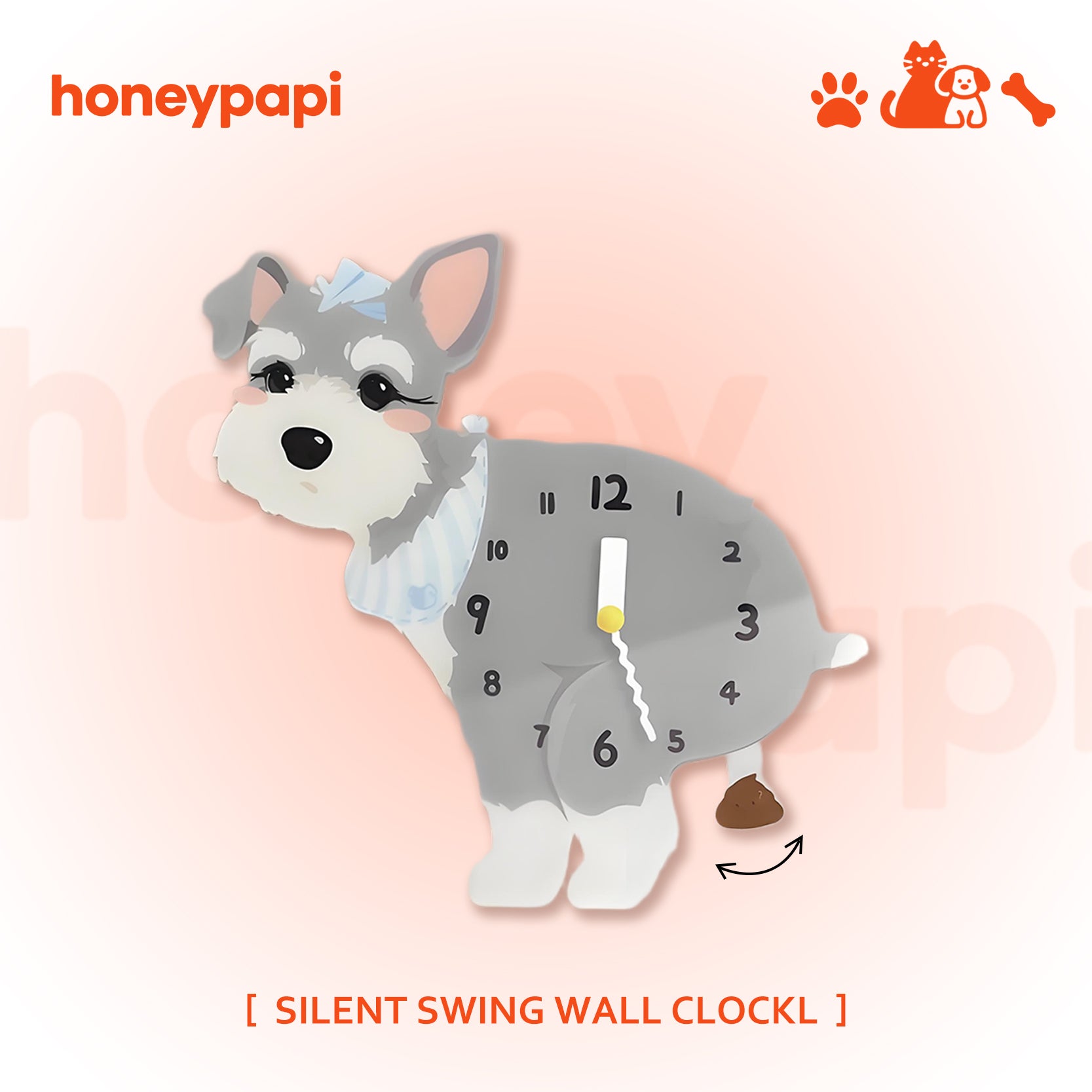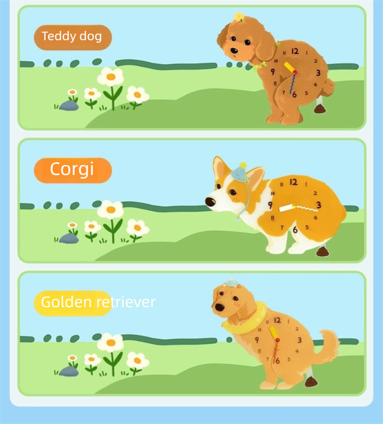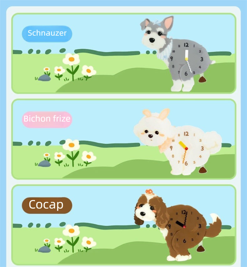 A cute small dog wall clock from the [Anytime Anywhere] series — silent, easy to hang with no drilling required, and perfect as a cozy home decor piece or birthday gift for dog lovers.