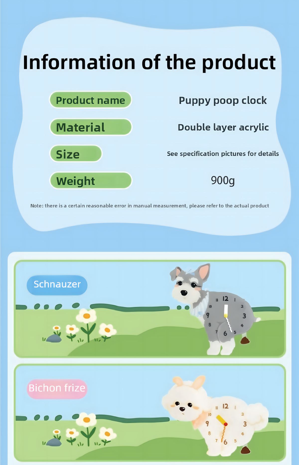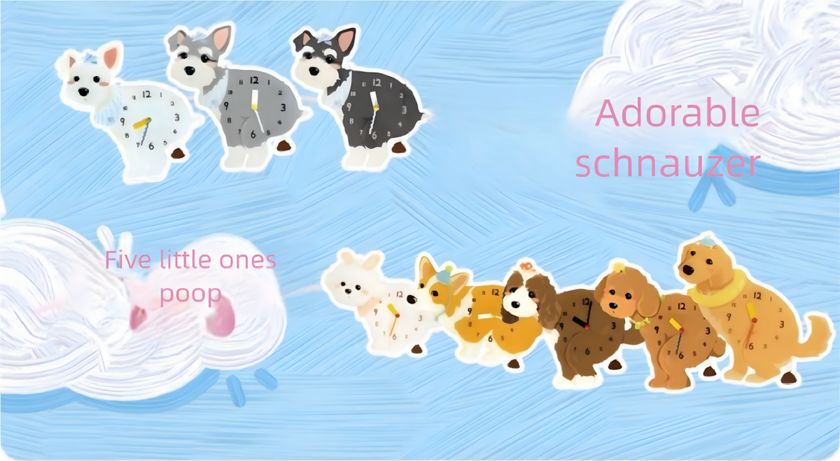 This specific clock features a fixed small dog illustration from the [Anytime Anywhere] series. For fully custom pet clocks based on your own pet, please see our other product listings.